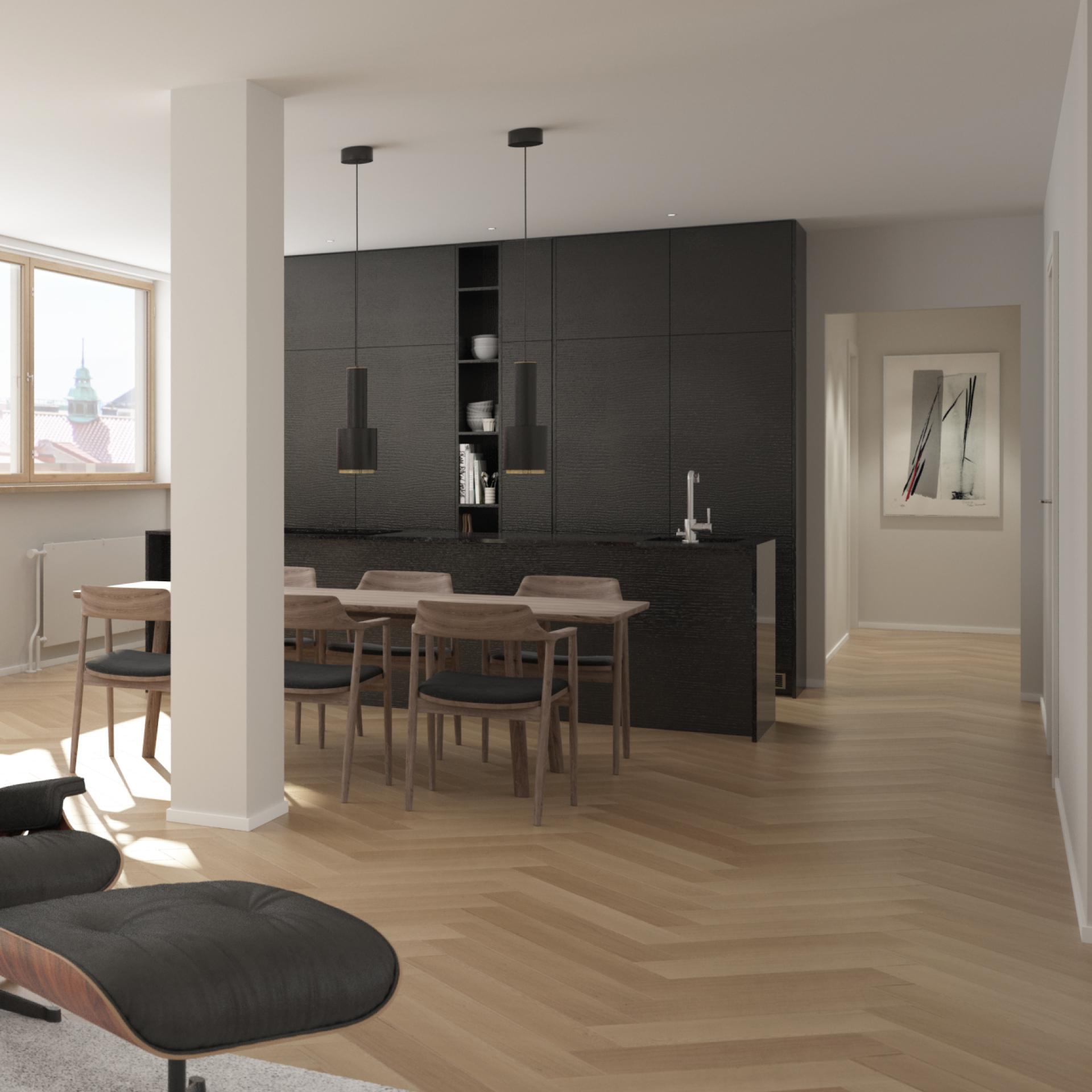 Arkkitehti on huomioinut jo asuntopohjia suunnitellessaan, että N&B-koteja voi personoida oman näköiseksi kuratoiduilla sisustustyyleillä ja tuotevalinnoilla.